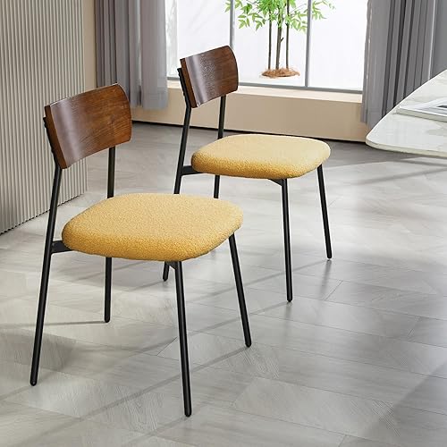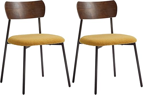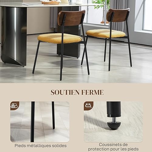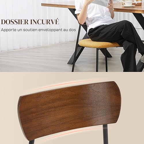 HOMCOM Lot de 2 chaises Salle à Manger Chaise de Cuisine Vintage Chaise de Salon rembourrée avec Assise Effet Bouclette, Dossier courbé Effet Bois pour Salon, Salle à Manger, Chambre, Jaune et Marron
