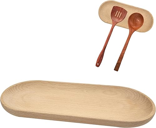 Repose Cuillère Cuisine, Porte Cuillere Cuisine en Bois Rétro Naturel Porte-Ustensiles Cuisine pour Porte-Couverts de Comptoir pour Spatules Cuillères Pinces et Autres Ustensiles de Cuisine Brun Clair