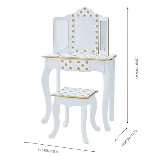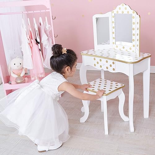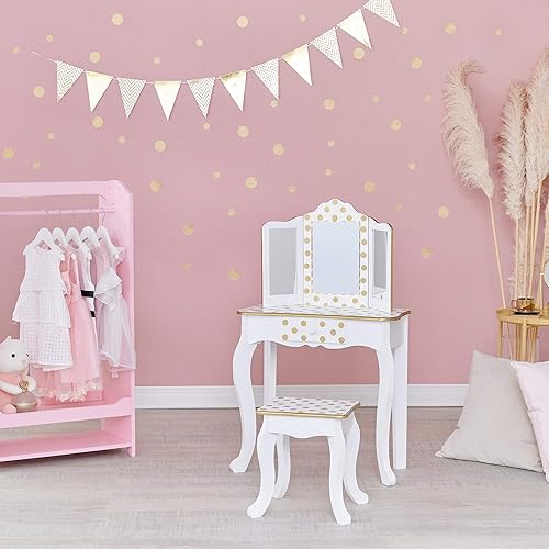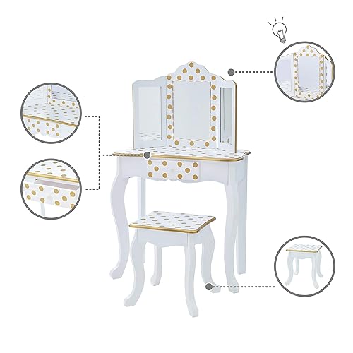 Fantasy Fields Coiffeuse Enfant en Bois Table Maquillage Miroir éclairage Tabouret Teamson TD-11670ML