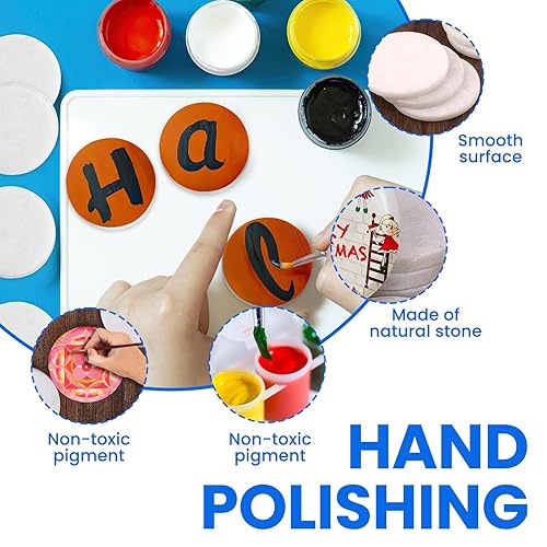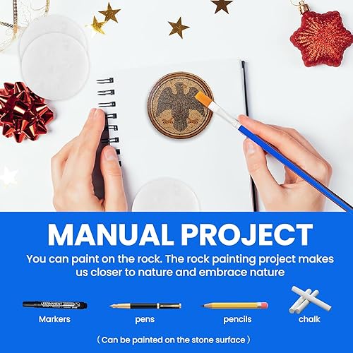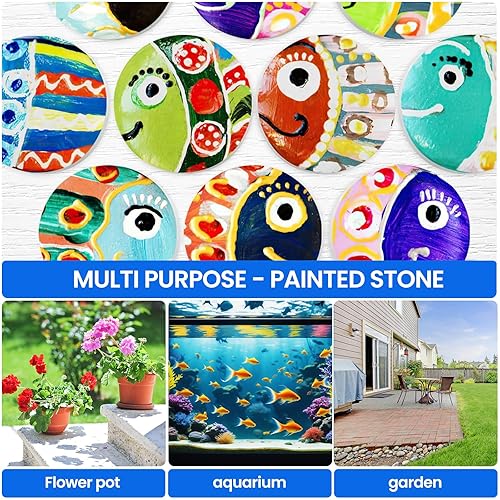 ysister 15 PièCes Pierres Plates Pour Peindre Pierres Pour Peindre Avec Pinceau Et Peinture Acrylique Pierres Plates Peinture Cailloux Peinture Bricolage Artisanat Pour Peinture Mandala