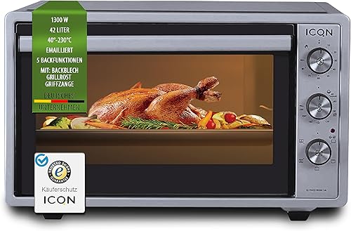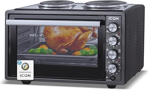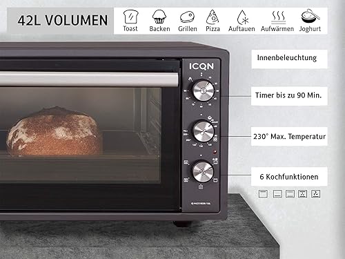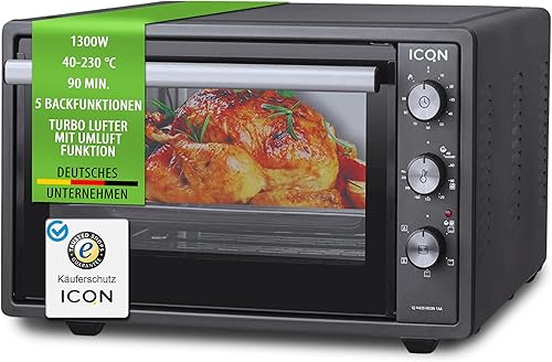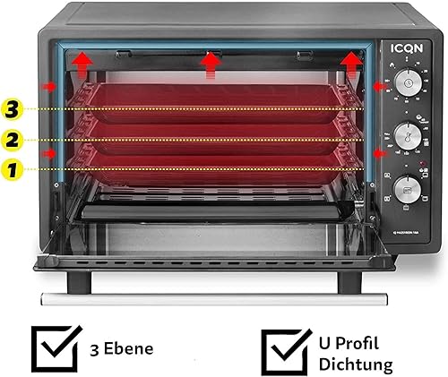 ICQN Mini Four Electrique 50L, Chaleur tournante, 40°- 230°C, 1400 W