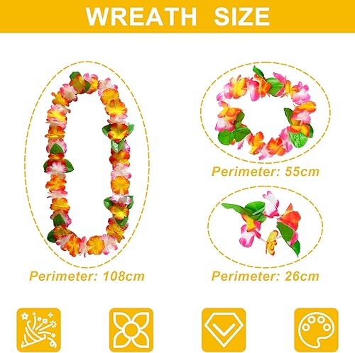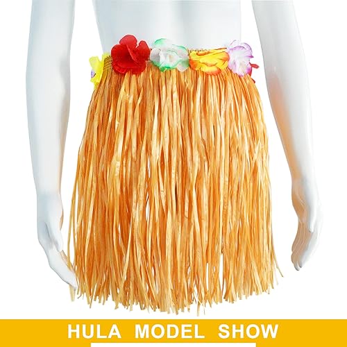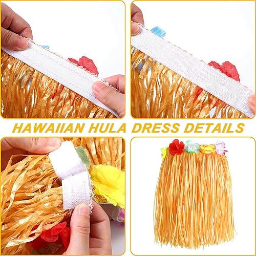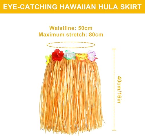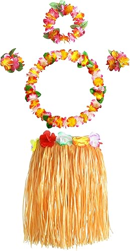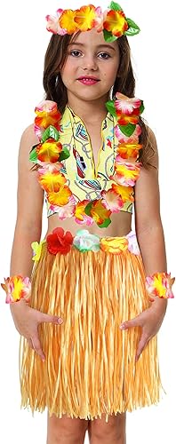 KEYIDO® Ensemble de jupe hawaïenne Leis Hula Grass avec jupe hawaïenne de 40 cm, guirlande hawaïenne, collier, bracelets, bandeau, enfants Tropical Luau Beach Hawaïenne