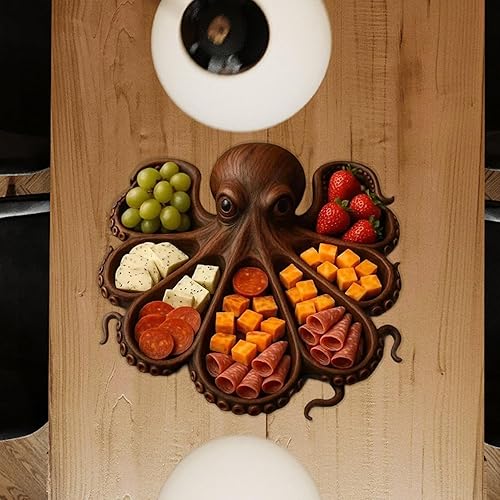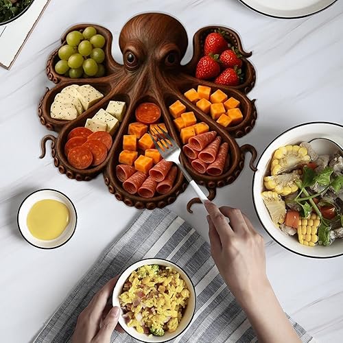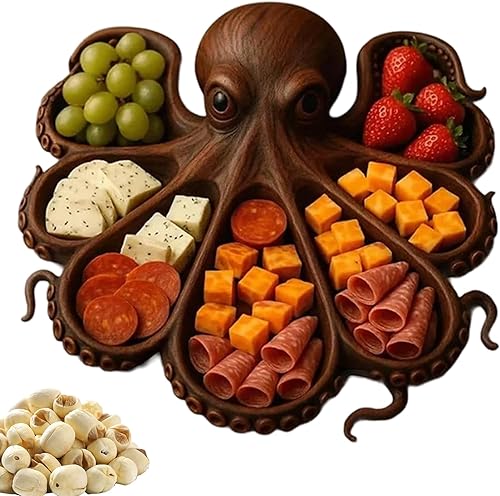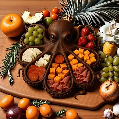 Plateau De Charcuterie De Poulpe, Plateau en Bois Forme Pieuvre, Présentation Gourmets Apéritifs Fromages Fruits De Mer Charcuterie Viandes