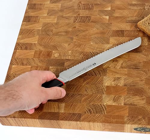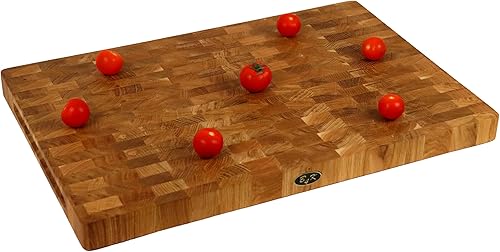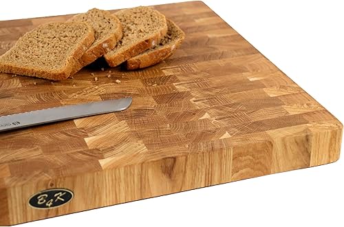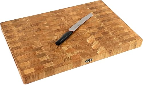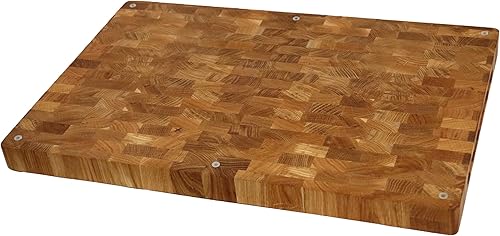 B4K® Planche à découper en chêne - 60 × 40 × 4 cm - Bloc de hachage massif - Planche en bois de cerveau antibactérien avec poignées et pieds en silicone - Parfaite pour la cuisine, la viande et le