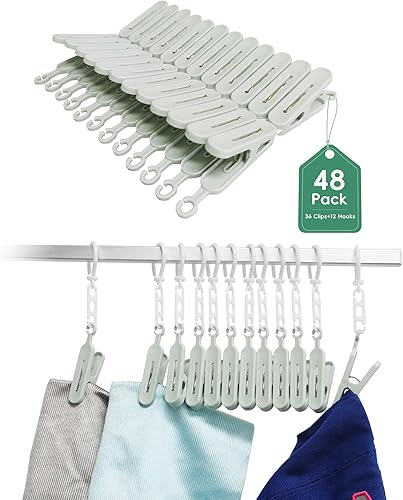 Foyer Nuage Lot de 36 pinces à linge en plastique avec 12 crochets, pinces à linge coupe-vent pour corde à linge, clips d'étanchéité de sac