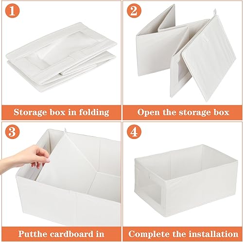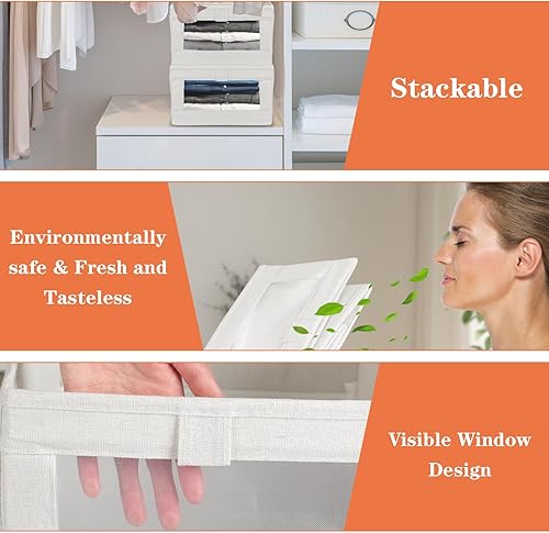 JASTOO Lot de 2 boîtes de rangement pliables avec fenêtre transparente - Boîte de rangement pliable avec boucle pour armoire, vêtements, livres, cosmétiques, jouets, etc