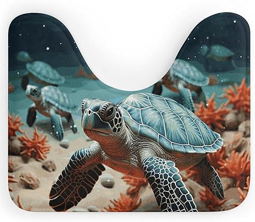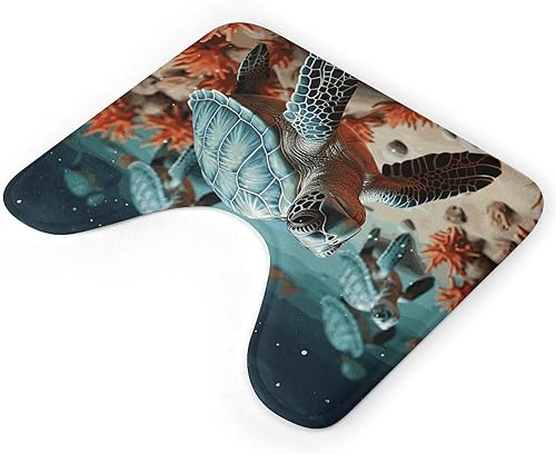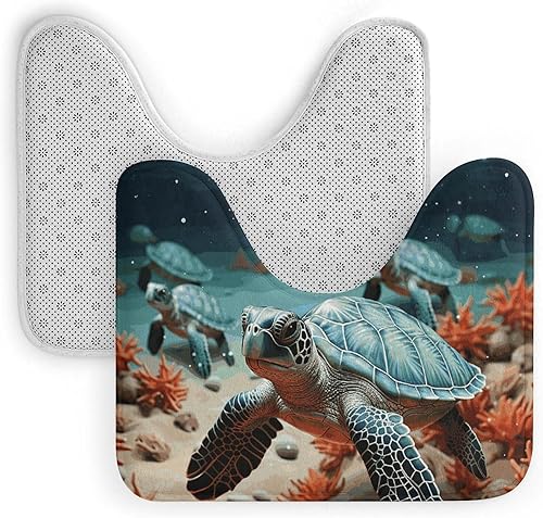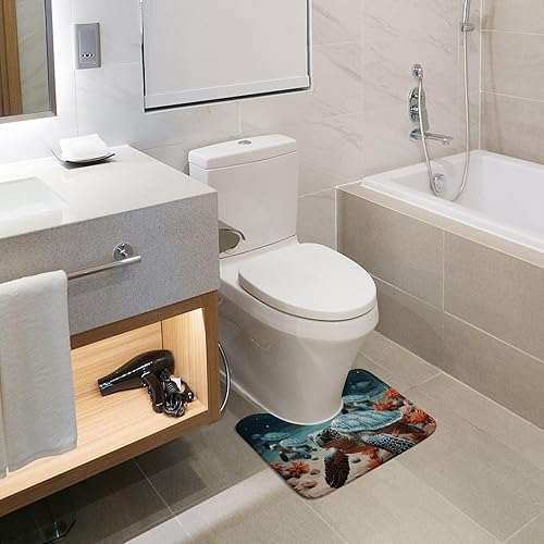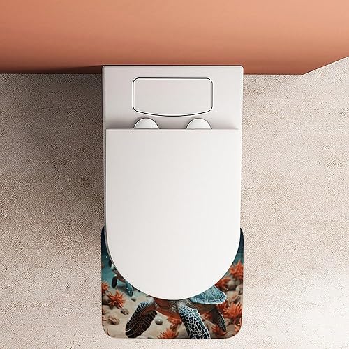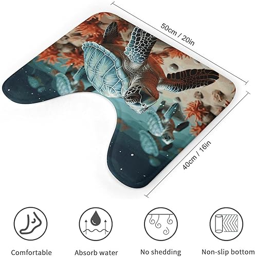 FZMVSQH Tapis de toilette lavable en forme de U en forme de tortue et étoile de mer pour salle de bain, antidérapant, super doux et absorbant, en microfibre, contour mignon, 50,8 x 40,6 cm