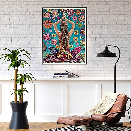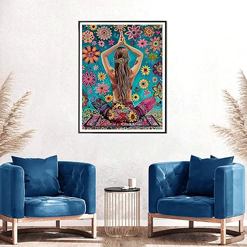 MOMAKA 5D Diamond Painting Kits Femme De Yoga, Diamant Peinture Kits Point De Croix Broderie Fleur, Kits Diamant Arts Craft Cross Embroidery Pour La Décoration Murale à Domicile 30x40cm