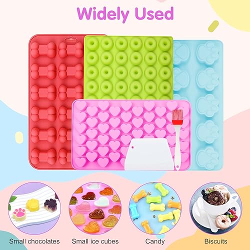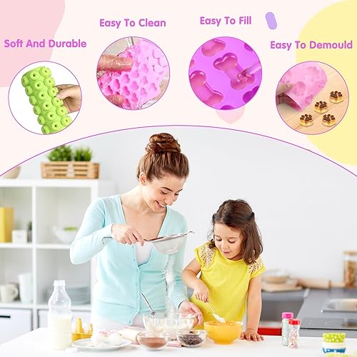 NVGVUP Lot de 10 tapis de cuisson en silicone pour friandises pour chien avec grattoir, pinceau à pâtisserie, pour friandises pour chien, chocolat, biscuits, bonbons, gelée, glaçons
