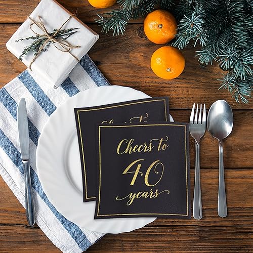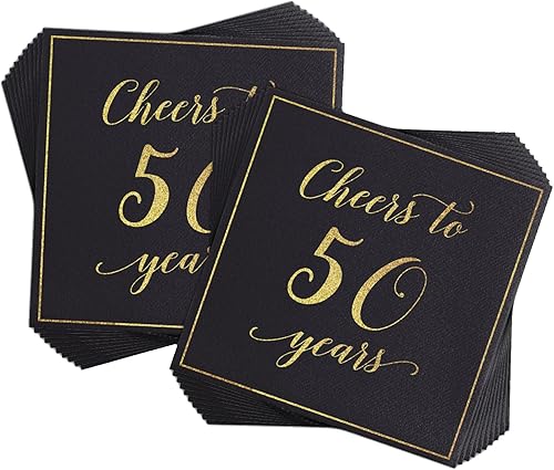Lot de 40 serviettes decoration anniversaire 50 ans - serviette papier personnalisée pour 50e anniversaire, deco anniversaire 50 ans homme et femme, Happy Birthday, 33 x 33 cm