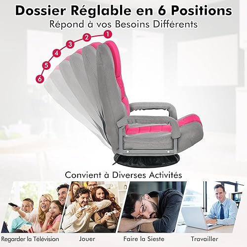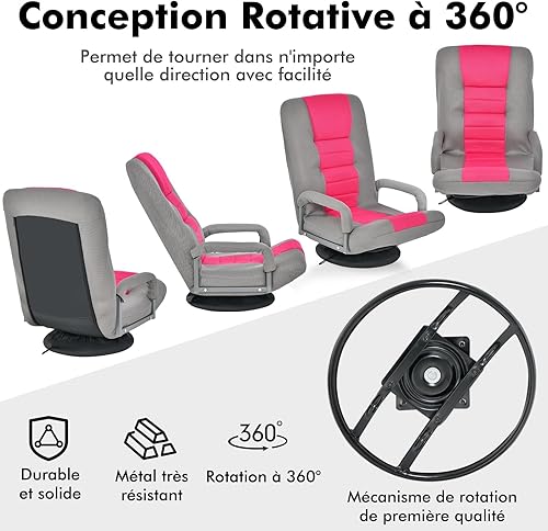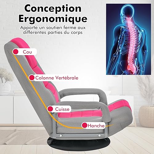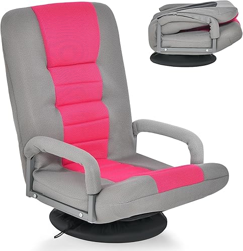 RELAX4LIFE Fauteuil Inclinables Pivotante à 360° Pliante avec Accoudoirs, Chaise Rembourrée Inclinable en 5 Positions pour Travailler, Jouer Idéal pour Salon, Chambre, Bureau (Brun Clair)
