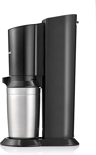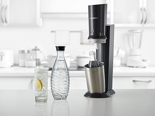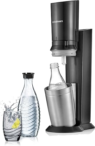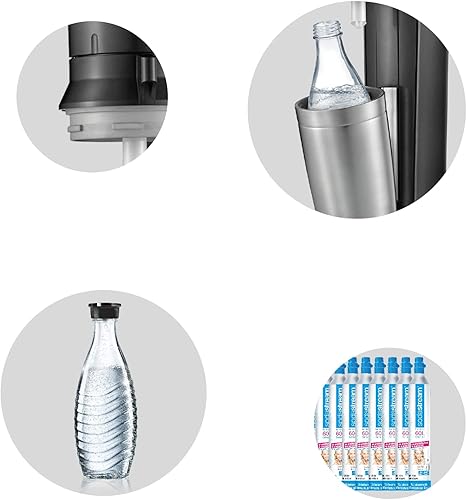 SodaStream Crystal 2.0, avec bouteille en verre allant au lave-vaisselle pour votre eau gazéifiée avec 1 cylindre et 1 carafe en verre 0,6l Couleur: Arroseur à eau potable Titan, acier brossé, 130 cm