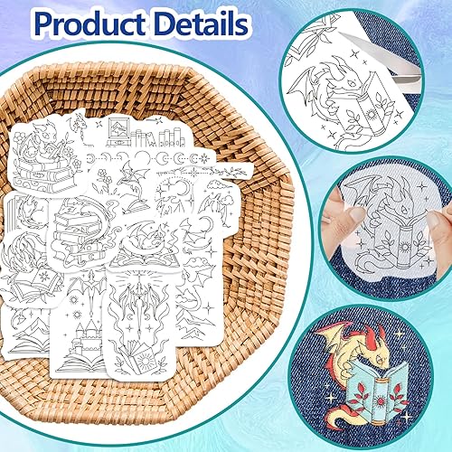 GLOBLELAND 4 feuille de Stabilisateurs de Couture à la Main Hydrosolubles Western Dragon Magic Books Wash Away Broderie Stabilizer Fleurs Feuilles Broderie Point Pratique pour les Débutants