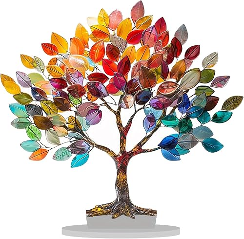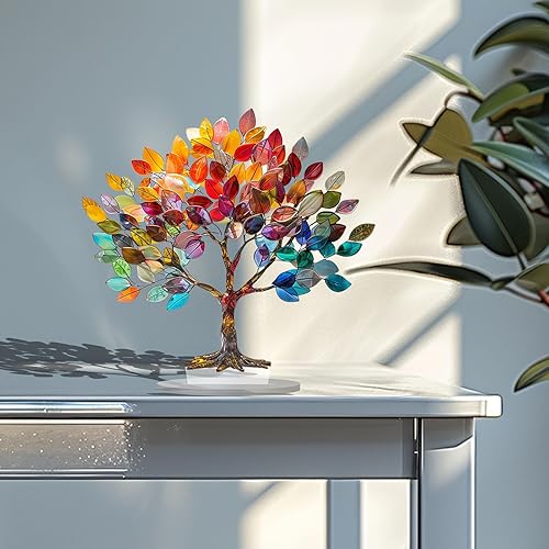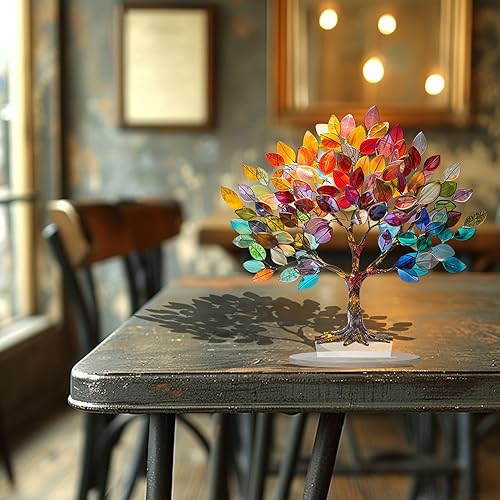 Ornement d'arbre de Vie en Acrylique avec Feuilles Colorées, Décoration Murale Fabriquée à la Main, pour énergie Positive, Bonne Chance, Argent, Arbre en Pierres Précieuses pour