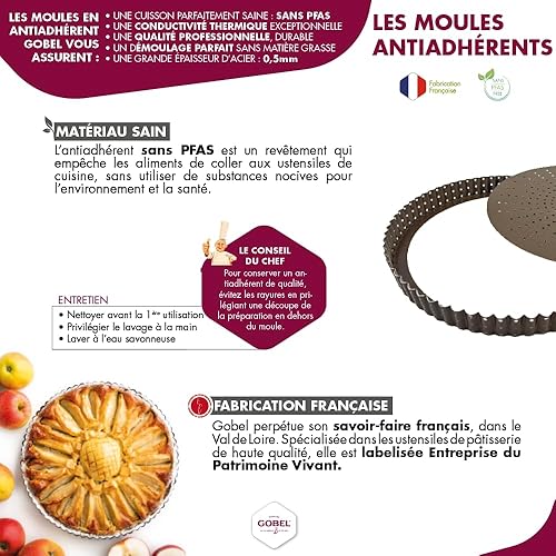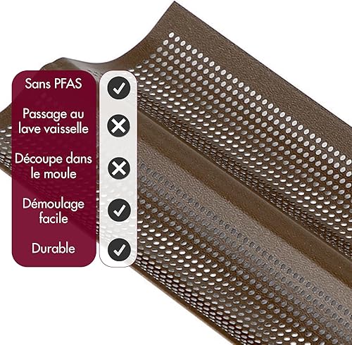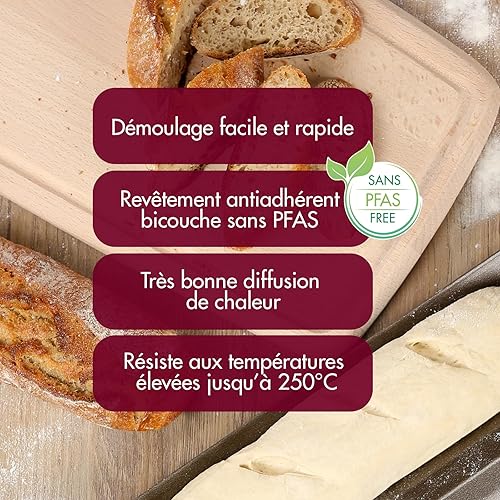 GOBEL - Plaque à 2 Baguettes Perforée - 38 x 16 x 2,2 cm - Acier - Revêtement Antiadhérent Bicouche Garanti sans PFAS - Qualité Professionnelle – Fabriqué en France