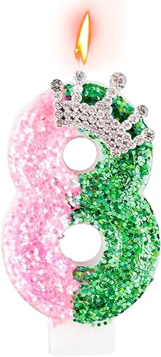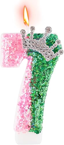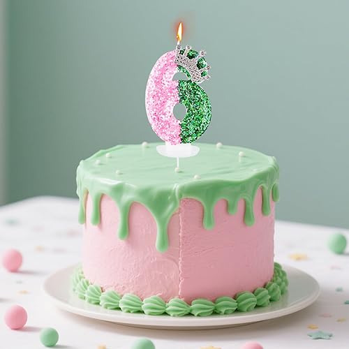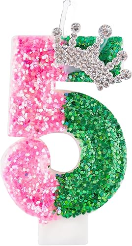 Bougie de Sorcière, Rose Vert Bougies d'Anniversaire Scintillantes Décoration de Gâteau Numérotée pour Thème Sorcière Magique Enfants Adultes Fournitures Fête d'Anniversaire (Numéro 5)