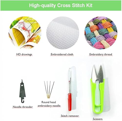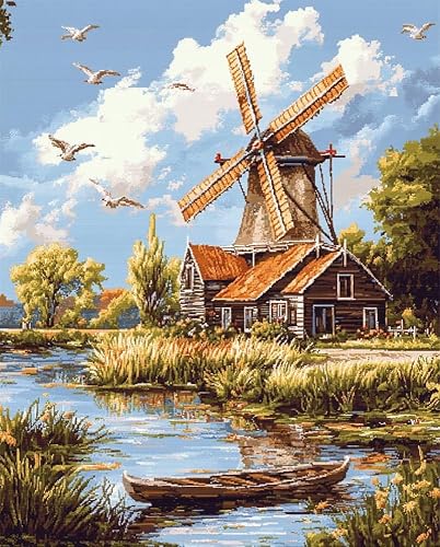 Canevas Broderie Point De Croix Kit Complet Adulte Debutant, Paysage De Moulin À Vent Hollandais 14Ct Kit Broderie Point De Croix Compté Imprimé Enfant Débutant Adulte Anglaise, Easy Set Loi