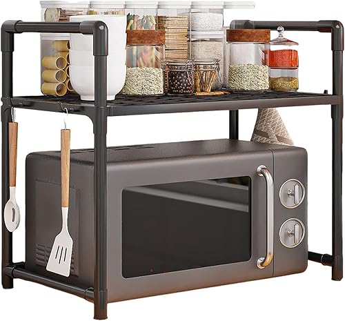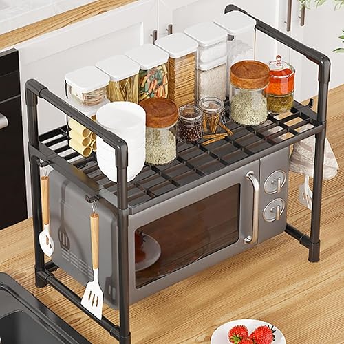 Quaeetyu Support pour micro-ondes | Étagère à micro-ondes, organisateur de comptoir de cuisine, étagère multifonctionnelle pour micro-ondes avec crochets et rangement, étagère de cuisine peu