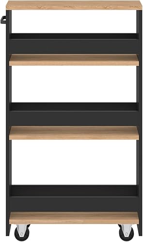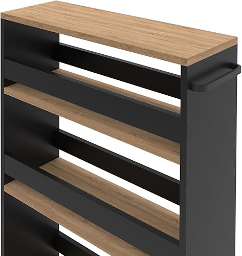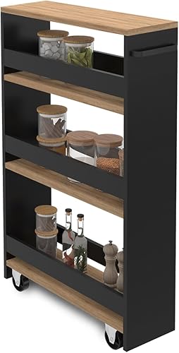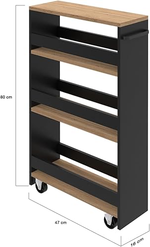 IDMarket - Desserte de cuisine gain de place HAGA chariot de rangement à étages noir et façon hêtre