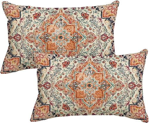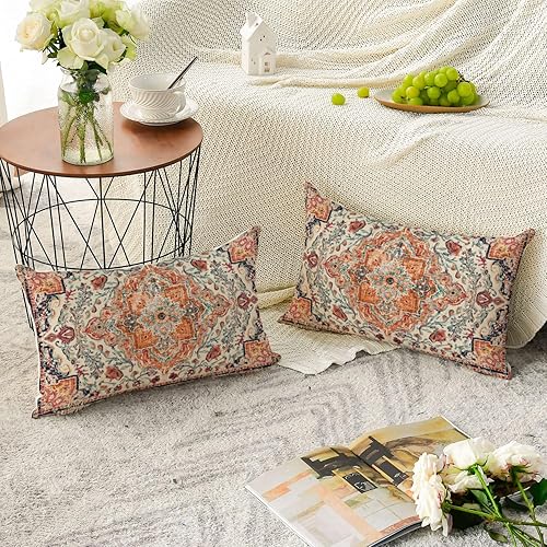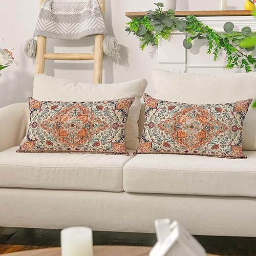 Artoid Mode Lot de 2 housses de coussin bohème, style vintage, orange, 30 x 50 cm, décoration saisonnière pour canapé, salon