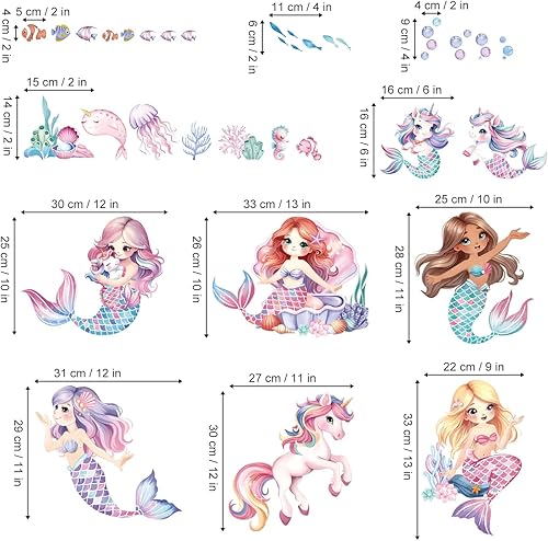 decalmile Stickers Muraux Licorne Sirène Autocollant Mural Sous la Mer Océan Algues Décoration Murale Chambre Enfants Bébé Fille Salle de Bain