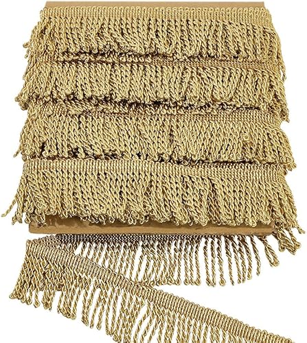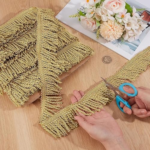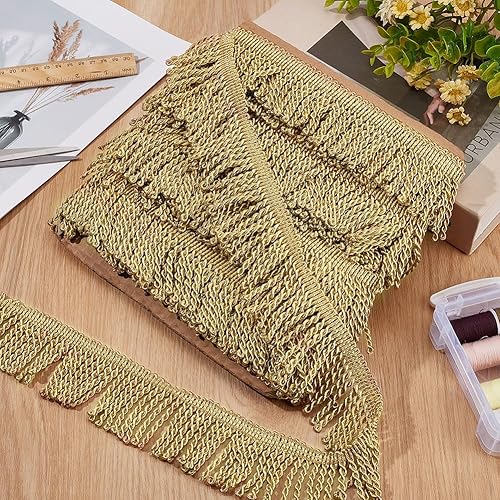 NBEADS 11m x 5.5cm Bordure Dentelle à Franges, Garniture en Dentelle à Coudre Chainette Garniture à Franges Décorative en Polyester pour Rideau Boîte Canapé Fournitures de Décoration, Or
