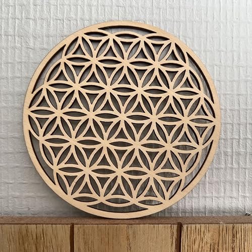 FLEUR DE VIE - Art mural en bois de la géométrie sacrée, décoration spirituelle pour le yoga, la méditation, la pendaison de crémaillère, le mariage, tableau de la grille des chakras