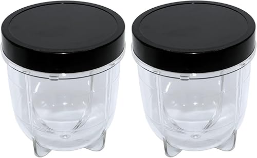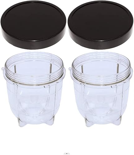 FHAJKTJB Paquet de 2 Tasses Courtes avec Couvercle de Pot Noir, compatibles avec Magic Bullet, mélangeur et Presse-Agrumes MB1001 250W