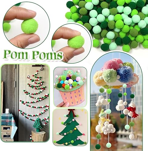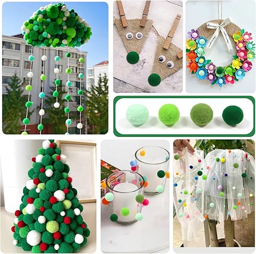 TOAOB Pompons 200pcs Pompons Loisirs Creatifs Vert Thème 20mm Petits Pompoms Artisanale pour Les Décorations de Bricolage Fournitures Couture Guirlandes Franges Projets et Artisanat