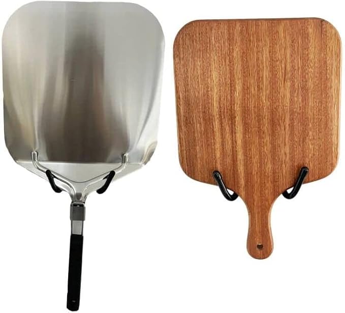 AUXPhome Lot de 2 supports muraux pour pizza et pelle à pizza - Support de rangement à pizza - Support mural en métal - Support pour ustensiles de cuisine - Avec noir - Pas de plateau à pizza