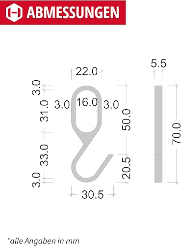 GEDOTEC Crochet de Suspension Tringle Ovale en Métal | Lot de 10 | Tube de Meuble Stable