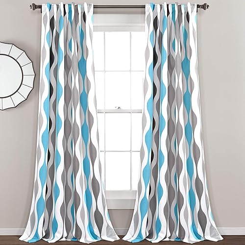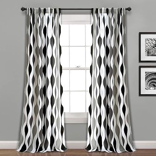 Lush Decor Mid Century Geo Paire de Rideaux de fenêtre occultants pour pièce, 132,1 cm de Large x 213,4 cm de Long, doré et Gris