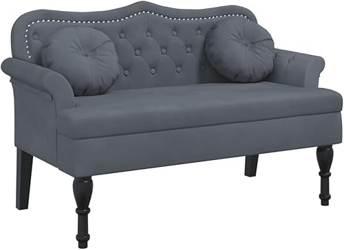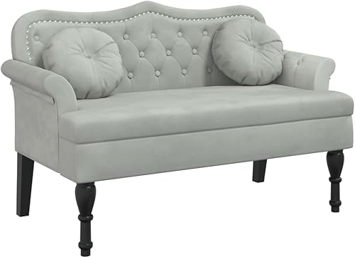 vidaXL Banc avec Coussins, Canapé avec Accoudoir et Dossier, Banquette avec Pieds en Bois, Siège de Salon Salle de Séjour, Gris Clair Velours