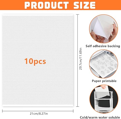 NINGYER 10 Pièces Stabilisateur Broderie, A4 (21x29.7 cm) Stabilisateur Broderie Soluble pour La Broderie DIY, La Broderie Machine et La Couture à La Main