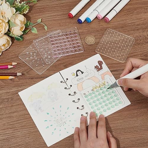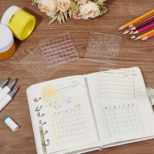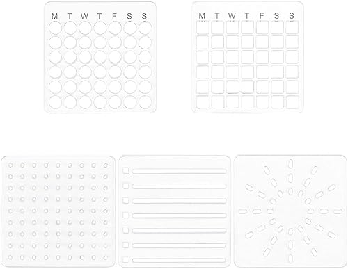 BENECREAT 5 Pcs Modèle de Pochoir de Calendrier Acrylique, Pochoirs de Peinture de Journal, Pochoirs Réutilisables à Grille Carrée et Ronde, pour la Fabrication de Mini Calendrier, Scrapbooking