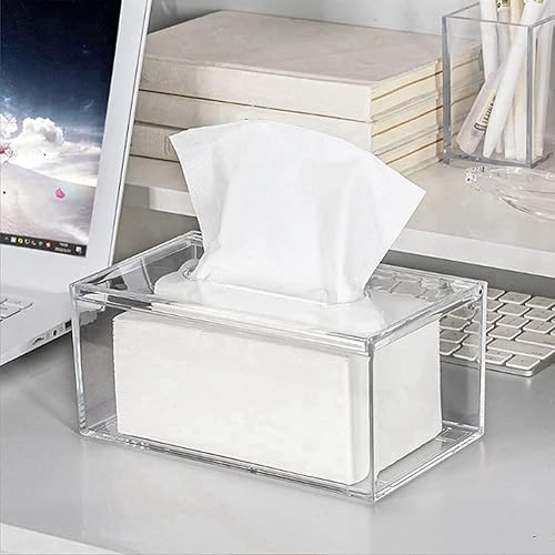 Jrifedptry Boîte à mouchoirs rectangulaire transparente en acrylique pour bureau, maison, salle de bain, restaurant, toilettes