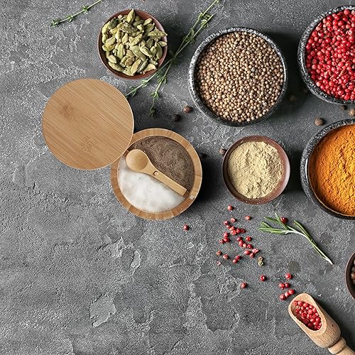 Relaxdays Boite à Condiments Couvercle et cuillère, 2 Compartiments, Bambou, HxD: 6,5x12,5cm, Fermeture aimantée, Nature