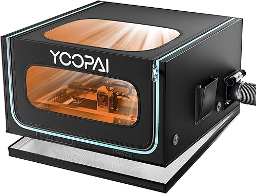 YOOPAI Boîtier Graveur Laser, Laser Enclosure avec Ventilateur d'Évacuation d'Air, Lumière LED et Couverture de Fond,72x72x40cm Boîtier de Protection Ignifugé et Etanche à la Poussière