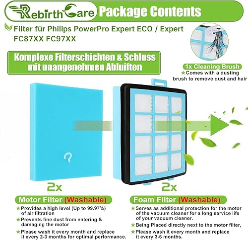 Rebirthcare 2 Filtres CRP745 pour Philips PowerPro Expert ECO Expert FC8760 FC8761 FC8764 FC8766 FC8767 FC8769 Aspirateur Filtre Accessoires de rechange, Remplace Philips CRP745/01#432200533151
