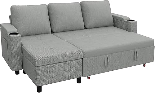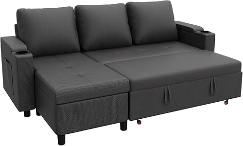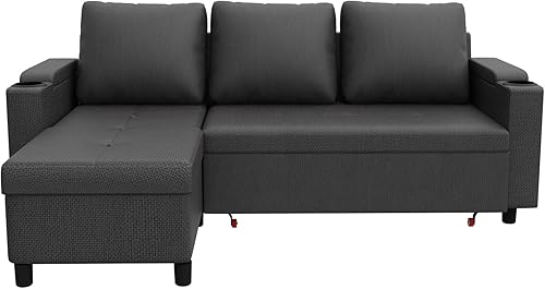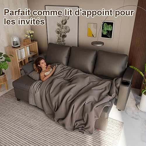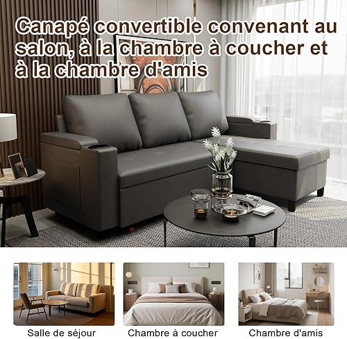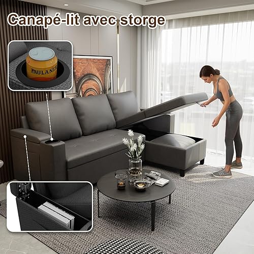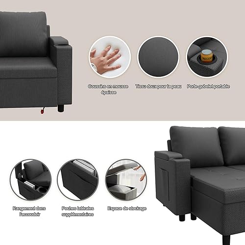 Devoko Canapé d'angle Convertible Modulaire 3 Places en L - Canapé-Lit avec Chaise Longue, Rangement Intégré et Porte-Gobelets - Design Moderne pour Salon, Anthracite (Gris)