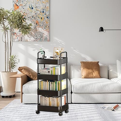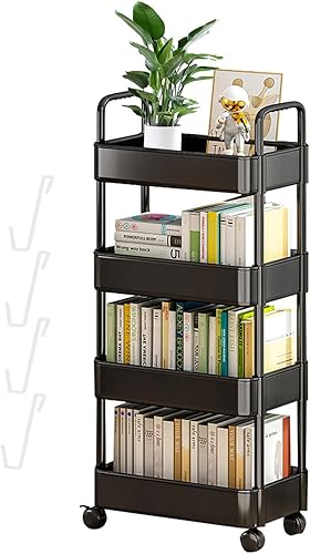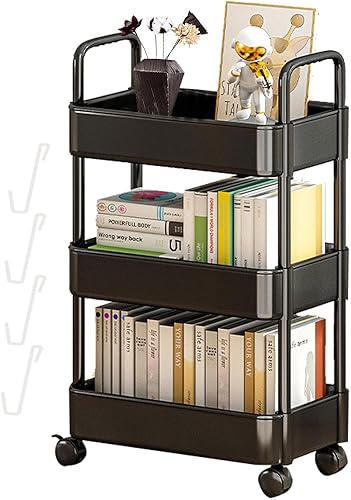 Supatmul Chariot de Rangement à 3 Niveaux, Étagère sur Roulettes, Organisateur avec Crochets pour Buanderie, Salle de Bain, Cuisine et Endroits Étroits