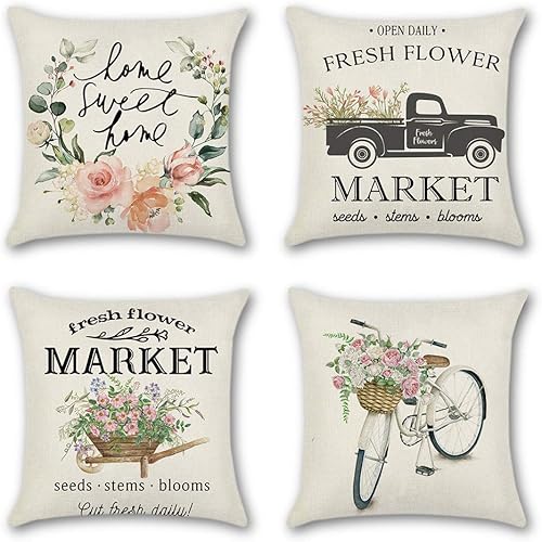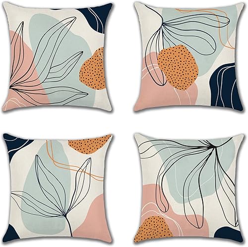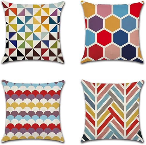 JOTOM Lot de 4 housses de coussin décoratives, respirantes, colorées, pour canapé, voiture, maison, lit, bureau, café, jardin, extérieur, 45 x 45 cm