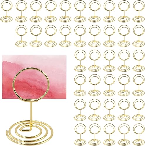 FAAING Lot de 40 porte-cartes de table en métal doré de 50 mm avec fils métalliques - Porte-photo avec pinces - Support pour cartes de table de mariage - Pour fêtes, restaurants