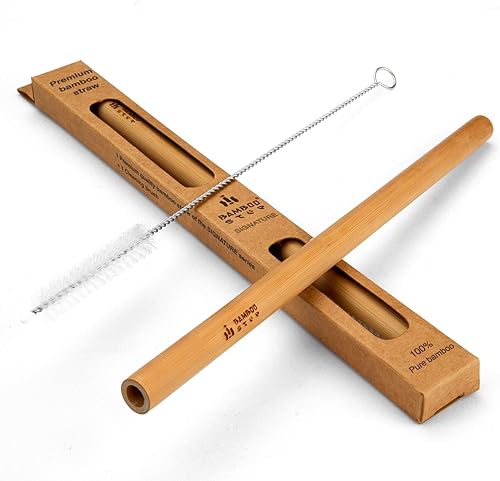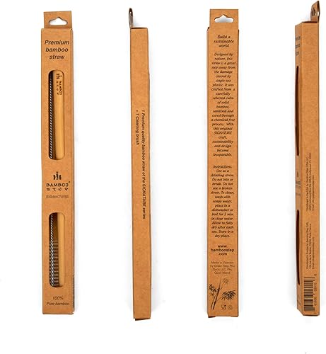 Bamboo Step - Pack de 3 kits individuels Paille en Bambou - gamme 'SIGNATURE' - 3x '1 paille en bambou (20cm) de qualité Luxe et 1 goupillon dans une boîte en papier kraft' (Diamètre Smoothie)
