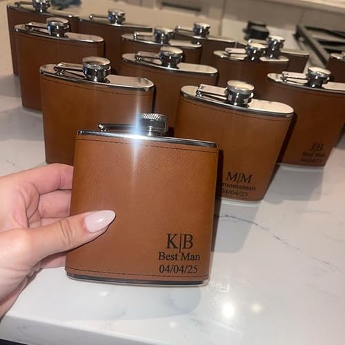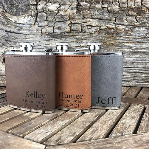 Flasque personnalisée de 177 ml en cuir avec gravure en acier inoxydable pour témoin de marié, cadeau de mariage, logo personnalisé