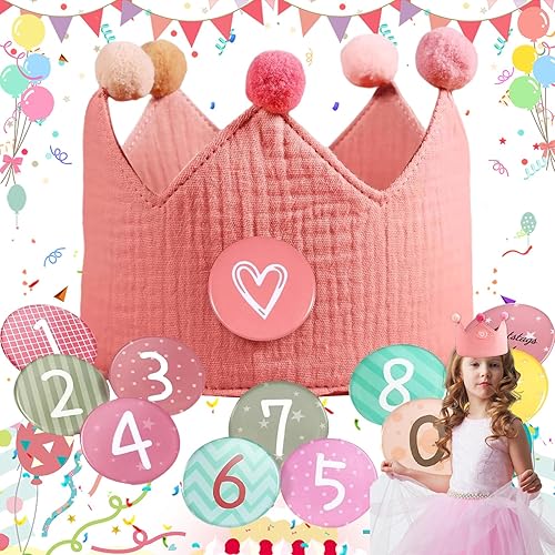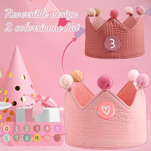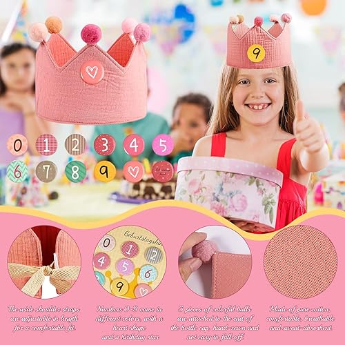 Basetousual Chapeau Anniversaire avec Couronne,Chapeau Anniversaire Enfant,Couronne Anniversaire avec Chiffres 1-9,Garçons Filles Couronne,Convient pour Les Accessoire Anniversaire et la Photographie