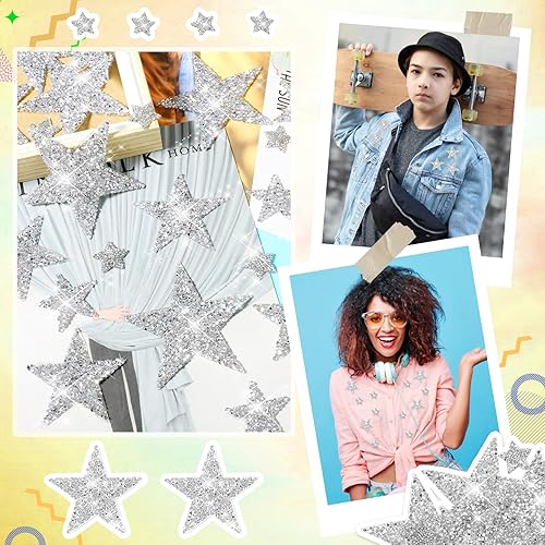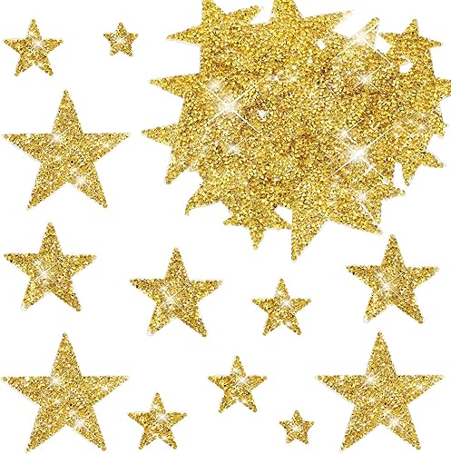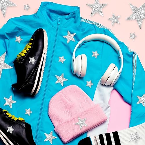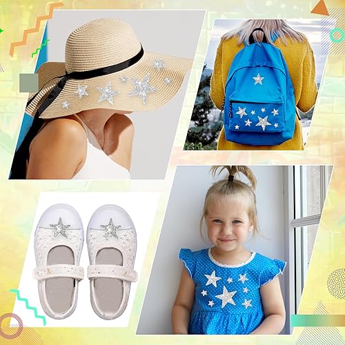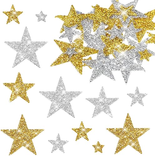 Lot de 24 étoiles thermocollantes, dorées, argentées, en strass, à repasser, pour vêtements, t-shirts, sacs à dos