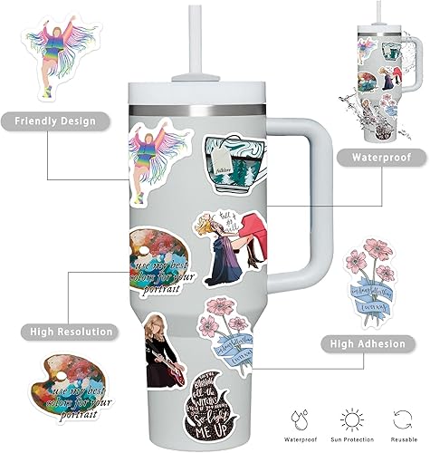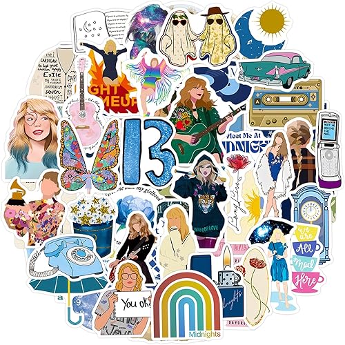 Autocollant TS Chanteuse Musique 200 Pcs Jolie Stickers Colorés Pop Star TS, Vinyle Imperméable Autocollant pour Scrapbooking Valise Ordinateur Portable Journaling Cahier Frigo Guitare Thermos etc