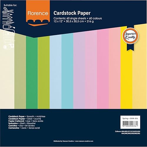 Florence Papier Cartonné Lisse - 30,5 x 30,5 cm - Spring - 16 x 5 feuilles - 216 g/m² - pour Scrapbooking, Carterie, Perforation et Faire Part de Mariage