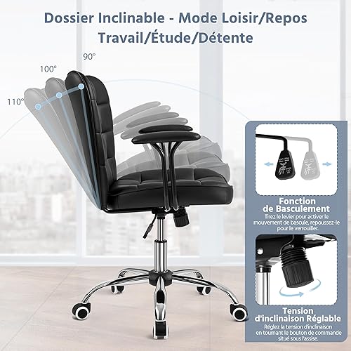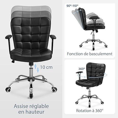 Yaheetech Chaise de Bureau à roulettes Chaise d'Ordinateur en Similicuir avec Hauteur d'Assise Réglable Dossier Rembourré Accoudoirs Détachables Rose